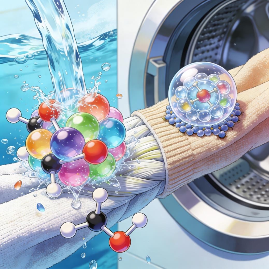 1. Encapsulación durante la fabricación:Durante la producción de detergentes, las fragancias micromoleculares volátiles se encierran de forma segura en cápsulas microscópicas a base de polímeros. Estas pequeñas cápsulas son muy estables y están diseñadas para resistir el entorno acuoso del ciclo de lavado.